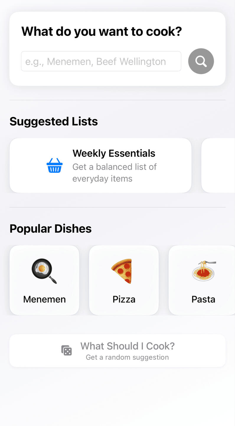 Sometimes you want to cook something, but do not know the ingredients to buy? Groci will help.